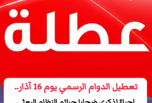 أعلنت الأمانة العامة لمجلس الوزراء تعطيل الدوام الرسمي يوم الاثنين الموافق 16 آذار 2026، في…