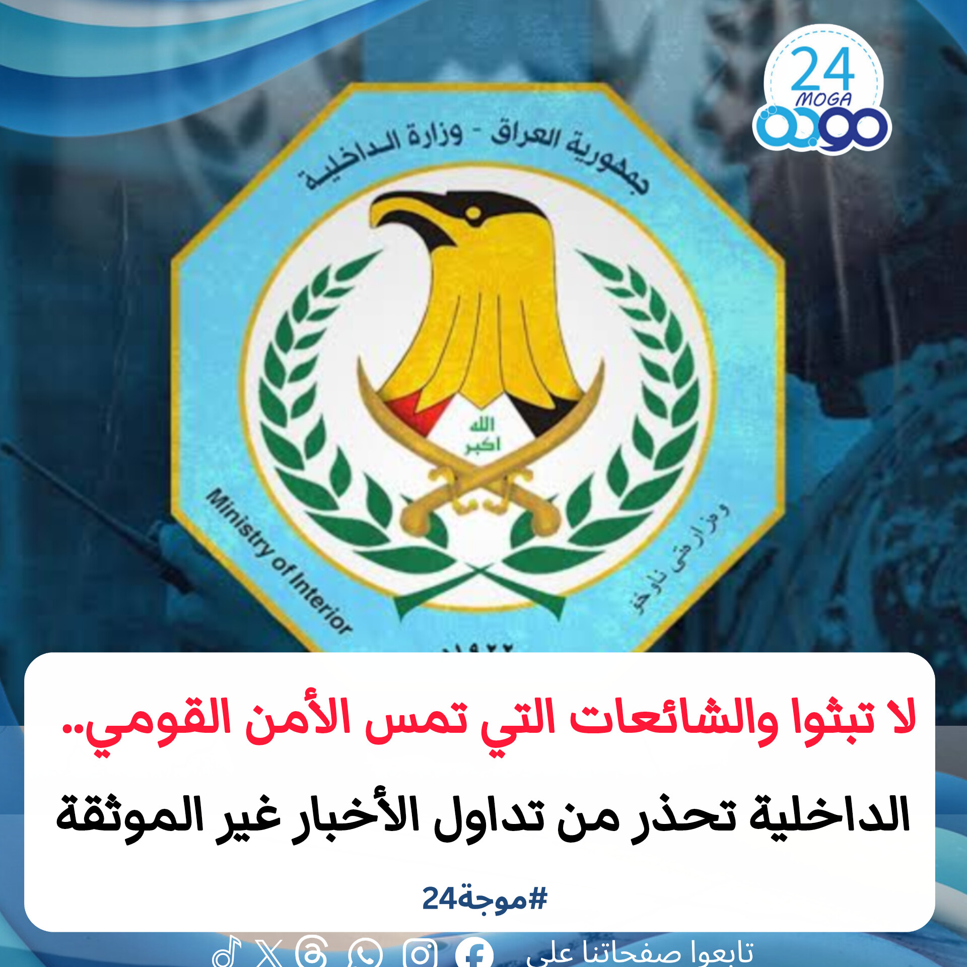 دعا قسم محاربة الشائعات في وزارة الداخلية المواطنين إلى توخي الدقة في تداول الأخبار عبر منصات التواصل الاجتماعي، محذراً من أن نشر المعلومات غير الموثقة يُسهم في بث الهلع وزعزعة الثقة، ومطالباً بالاعتماد على البيانات والمصادر الحكومية الرسمية حصراً.