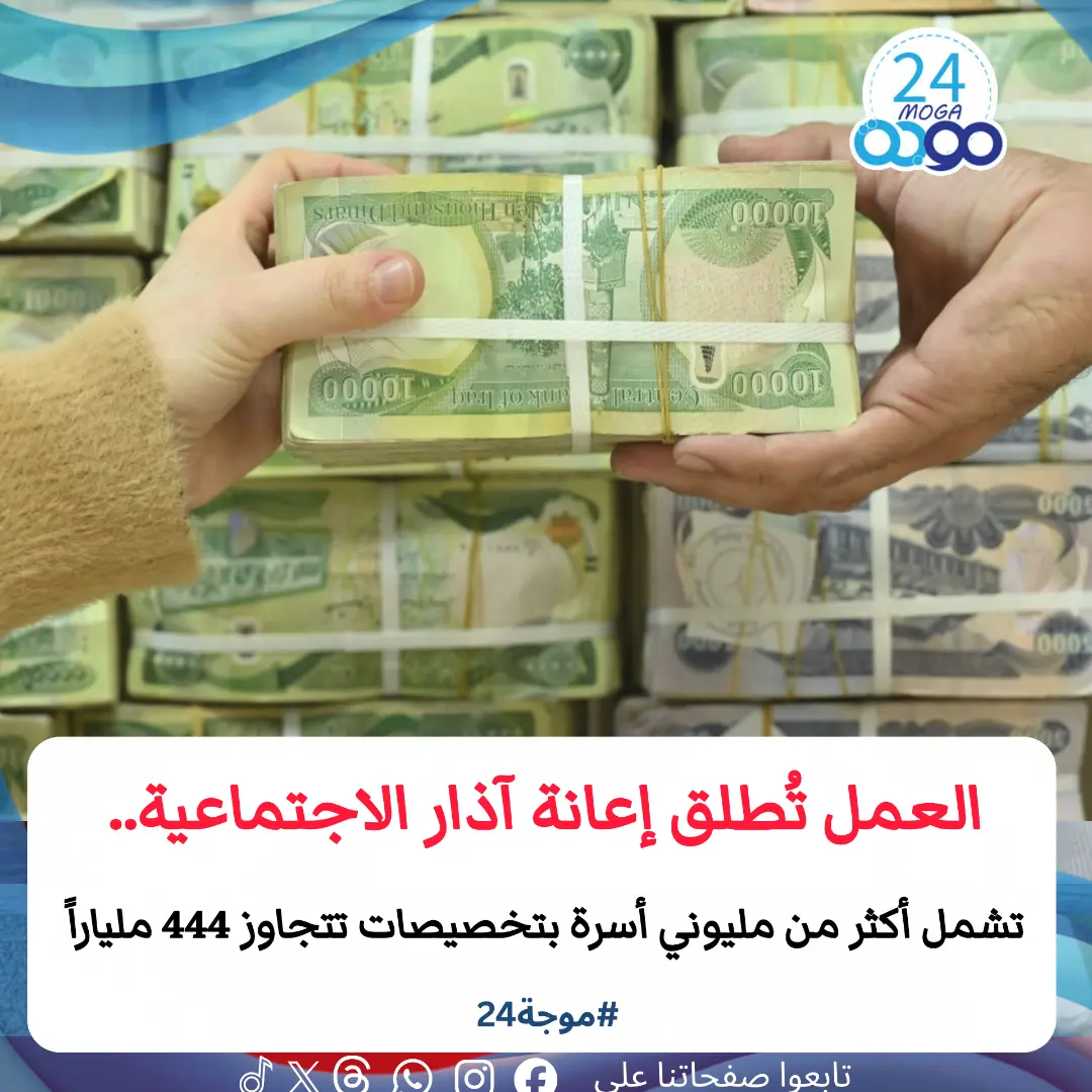 أعلنت وزارة العمل والشؤون الاجتماعية إطلاق دفعة الإعانة الاجتماعية لشهر آذار، لتشمل نحو مليونين و70 ألف أسرة في بغداد والمحافظات باستثناء إقليم كردستان، وبمبلغ إجمالي تجاوز 444 مليار دينار.