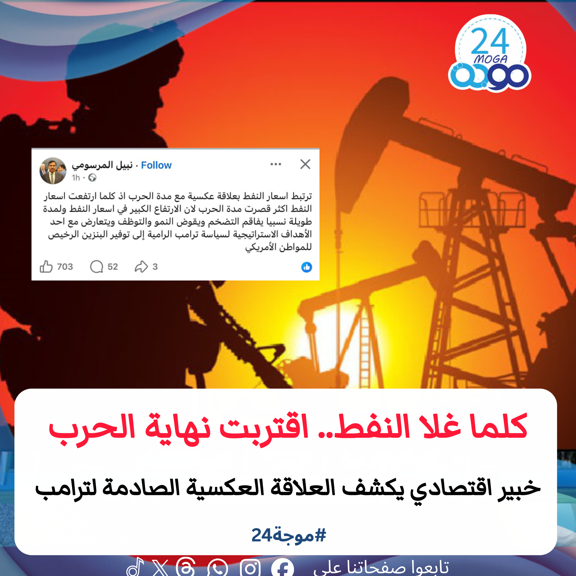 وخلص الخبير الاقتصادي إلى أن هذا الضغط الاقتصادي الداخلي يدفع واشنطن نحو تسريع إنهاء الحرب، كلما ظلت أسعار النفط مرتفعة.